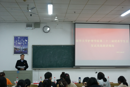 2021年4月7日晚,PA视讯,PA视讯在一教111教室举行第二十二届团委学生会干部复试竞选演讲。PA视讯2019级、2020级共54名候选人参加竞选。PA视讯党委副书记彭建南、团委书记夏代会、辅导员夏艺萍以及第二十一届团委学生会干部出席活动。2019和2020级各班代表观看并参与投票,竞选演讲由198班王淞主持。