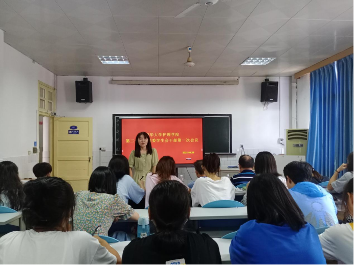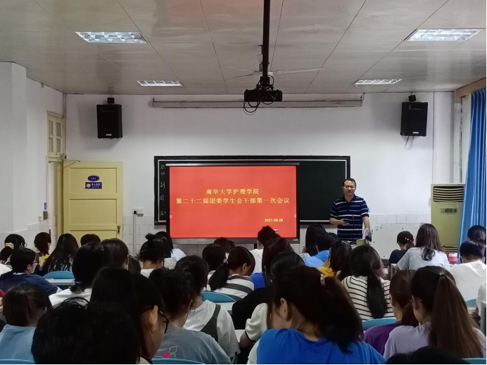 2021年9月28日中午13:00,PA视讯,PA视讯第二十二届团委学生会干部秋季第一次会议在PA视讯204多媒体报告厅举行。PA视讯党委副书记彭建南、学工室主任李翼、研究生团委书记夏艺萍、本科生团委书记夏代会出席,PA视讯全体团委、学生会、学社联干部及2019级、2020级、2021级班长和团支书参加会议。本次会议由学生会执行主席左雨婷主持。
