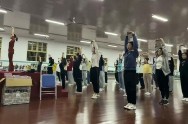 最后,为了让同学们放松,曾老师携全体助教以一支优美的舞蹈《大鱼》结束课堂,同学们坐在下面静静的欣赏,给予很好的反响。有同学感叹:“曾老师的柔韧性和苗条的身材真的惊艳到我们了,我们作为新一代的年轻人都自愧不如!”还有同学说:“我以前一直觉得自己很挺拔,但是通过今天这堂课,我才发现自己只是一味地追求向上,却没收尾椎,沉脚后跟,整个人都是前倾的状态。”马同学表示:“我好喜欢上这门课,感觉自己都变优雅了,以前从来没接触过,以后还想多来蹭曾老师的课!”