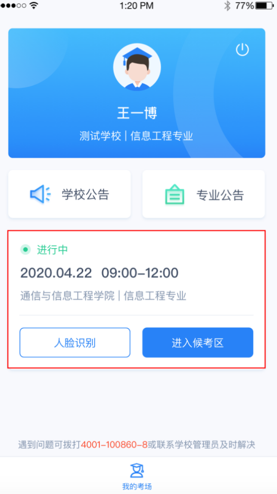 a. 查看考场的日期时间、考场名称等信息,若有疑问及时跟学校管理员取得联系