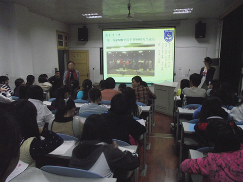 冯老师为大家讲解了托福、雅思英语考试的流程、难度及重要性。她还联系护理专业说明了英语在护理行业甚至整个医疗行业的重要性。会上,她指出学习英语对正处在高速发展时代的中国大学生来说必不可少,对未来职业道路的影响不容忽视。紧接着在现场问答环节中,同学们积极提出了自己的疑问,冯老师也依次耐心地作了解答。