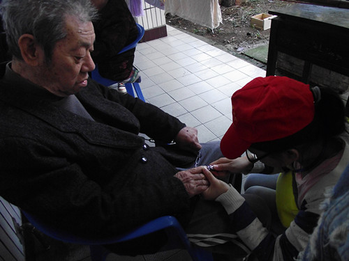 上午八点,志愿者们准时从南华广场出发到达了五一电厂敬老院。逢天气晴朗,老人们都静静地坐在屋外,享受着难得的暖阳。志愿者们来到老人身边,亲切地问候他们,给他们捶腿按摩,帮他们剪手指甲,手握手地陪他们聊天,看电视。老人们看到志愿者们也很开心,笑着跟同学们聊天,谈起自己平时的生活。像是一家人聚在一起唠家常,场面十分温馨感人。