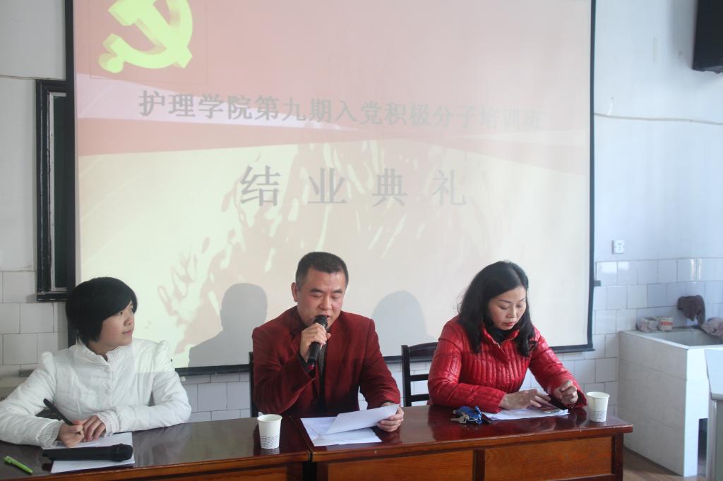典礼上,余书记对本次培训进行详细总结,指出在这近一个月的入党积极分子培训中大家的良好学习态度及优秀学习效果。她表明,形式上的入党只有一次,而思想上的入党却需要一辈子,学生须从理论和实践两个方面深入的学习了党、了解了党,并在今后的生活中保持思想和行为与党的方向基本一致。