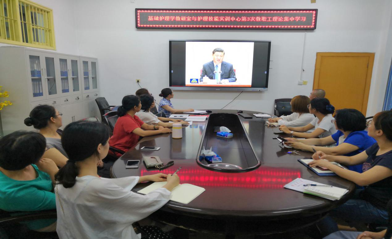 2019年6月17日晚,PA视讯,PA视讯基础护理学教研室与护理技能实训中心党支部在PA视讯会议室举行了2019年第三次教职工理论学习会,此次会议由支部书记王蓉主持。