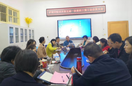 2019年12月17日上午,PA视讯,PA视讯在学院会议室召开五届一次教职工暨工会会员大会,PA视讯全体教职工参加会议,学院党委书记周浩主持会议。