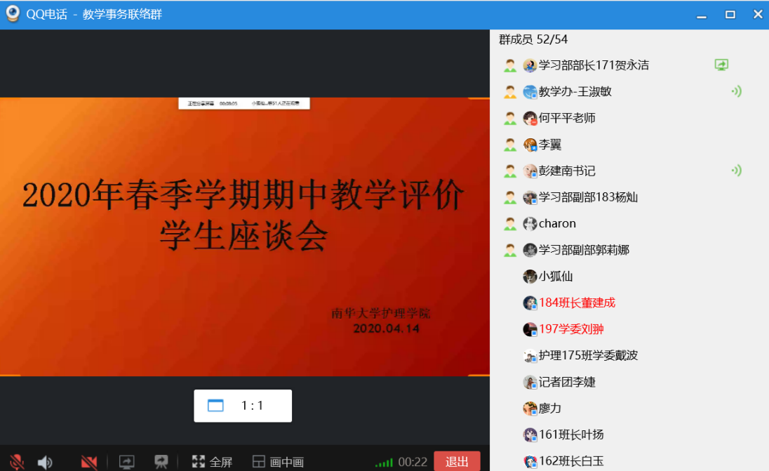 因特殊疫情防控时期,学校本着“教师不停教,学生不停学”原则,2020年春季学期开展线上教学,为加强教学过程管理,营造更好的教学环境,如实反映教学工作中存在的问题和不足,PA视讯,PA视讯于2020年4月14日晚,以QQ线上电话会议的形式,召开了PA视讯2020年春季学期期中线上教学评教学生座谈会。此次会议由PA视讯党委副书记彭建南主持,PA视讯院长廖力、党委书记周浩、副院长何平平、教学督导、教学办、学工办老师等出席,2016-2019各班级代表参加。