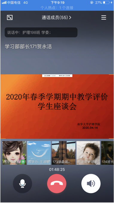 会议最后,院长廖力指出,在现今危急时刻大家能够积极响应“停课不停学”的号召,网上教学已经初步成效。她希望老师和同学们能够共同努力,希望同学们能够早日回到校园。同时,党委副书记彭建南提醒大家做好疫情防控,在家合理安排学习,同时也要适当放松、调节心情并且加强锻炼,全体师生一起共克时艰,战胜困难!
