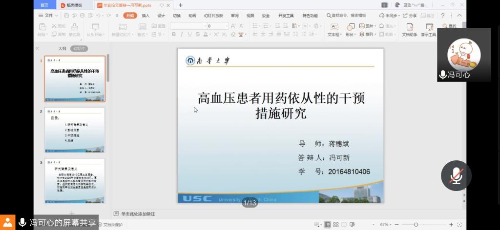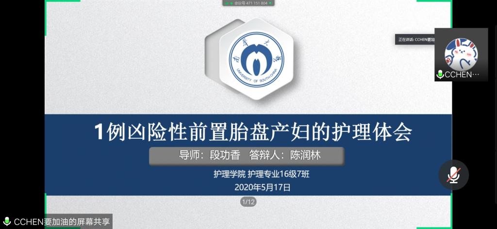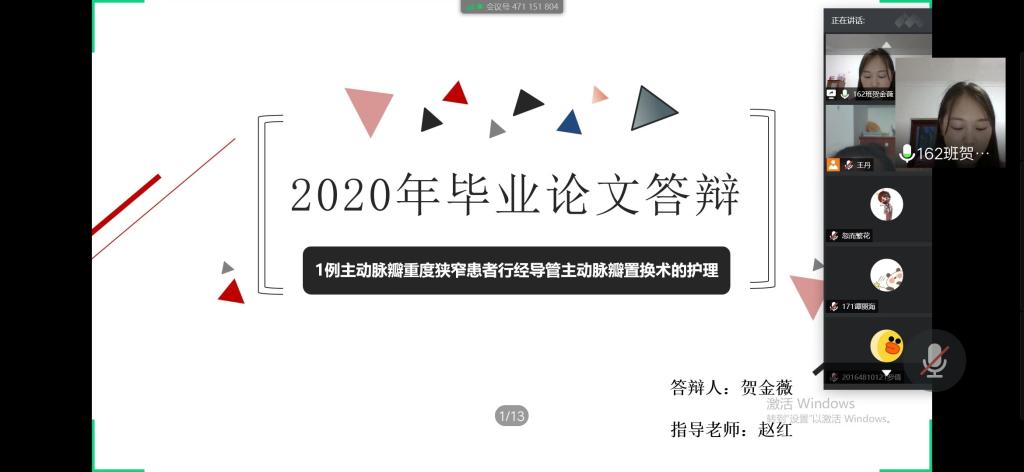 2020年5月20日晚上,PA视讯,PA视讯基础护理教研室通过腾讯会议在学院214教室举行论文线上答辩会,2020届10位护理本科毕业生参加论文答辩。教研室主任王蓉担任答辩组长,段功香、周浩、蒋穗斌、赵红、易利娜和伍媚春老师担任答辩委员。