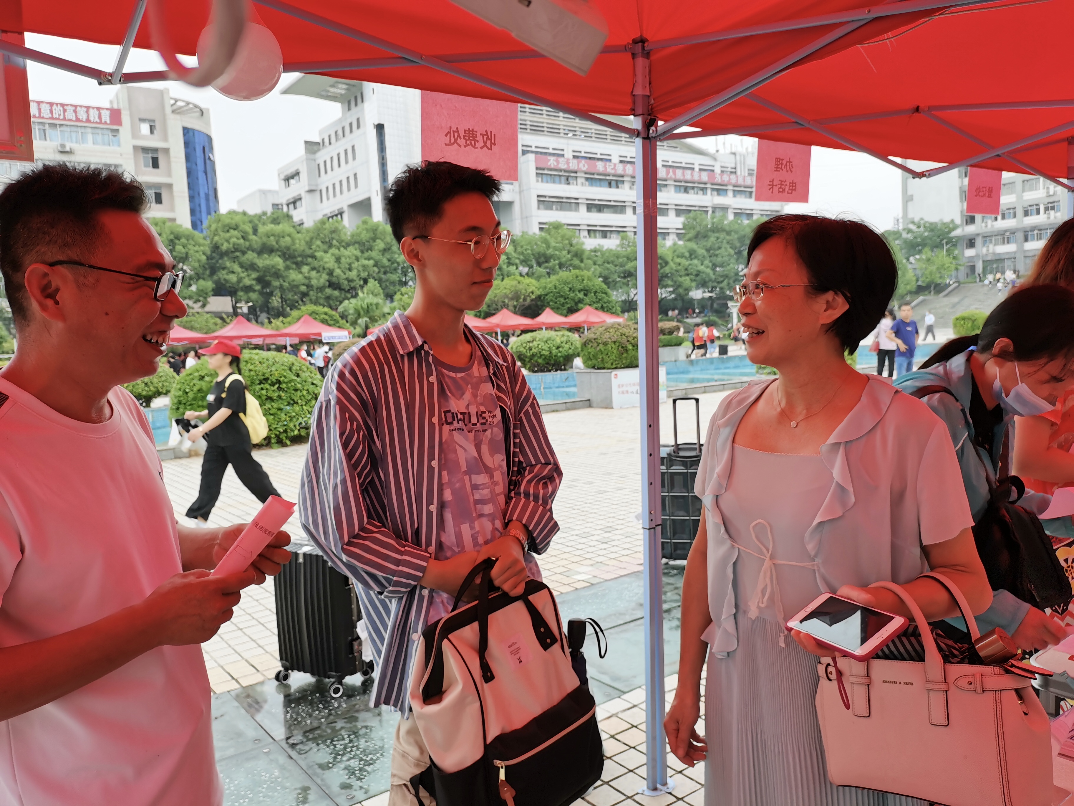 12日上午,PA视讯院长廖力、党委书记周浩、副书记彭建南及各班班主任、辅导员老师亲临迎新现场,慰问新生、家长和迎新工作人员,并详细了解新生报到情况。