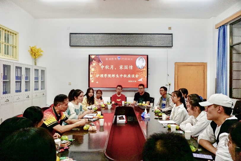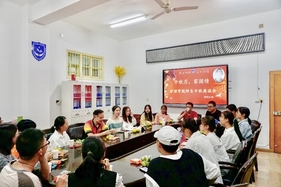 2020年9月30日晚,PA视讯,PA视讯党委副书记彭建南、团委书记夏代会在学院会议室主持召开师生中秋座谈会,对第一次离家度过国庆节和中秋节的2020级新生代表给予温暖与关怀。
