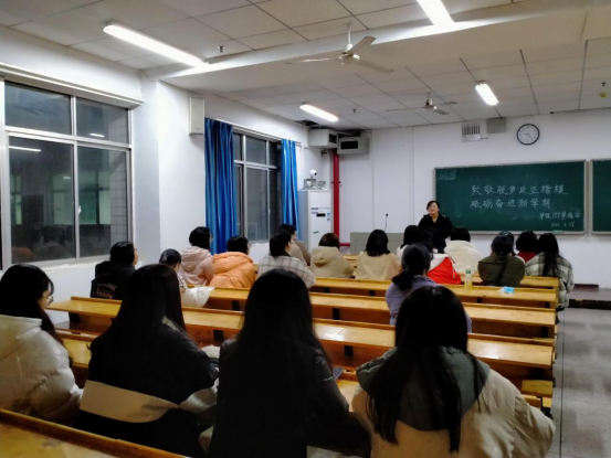 曾谷清副院长作为192班班主任参加班会,对同学们提出三点建议。一是要用心学习,自主学习,能清楚认识到新学期各门课程,特别是护理专业课程的重要性。二是要规范作息,加强锻炼,以全新的精神面貌迎接新学期,充分展现大学生的青春风采。三是要做好职业和人生规划,使自己拥有持久的奋斗目标与动力。