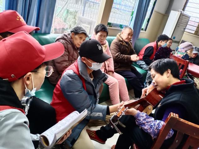 抵达养老院后,志愿者们开始按计划分工行动,为老人们准备爱心礼物。在养老院的大厅里,志愿者们与老人们促膝交谈,话拉家常,关切地询问他们近期身心状况和居住感受。老人们纷纷表示,住在养老院里,大家互相照顾,互相陪伴,就像家一样温暖。还有的志愿者陪伴老人一起下棋娱乐、观看电视节目,在欢声笑语之间,志愿者还即兴表演起了吉他弹奏。一些志愿者在厨房忙碌,亲手为老人包爱心饺子,让老人们感受到小团圆的温暖。最后,志愿者们一起表演了精心准备的歌曲与小品。炊烟袅袅中,敬老院内外洋溢着温暖欢乐的气息,现场气氛十分活跃,掌声和欢笑声回荡在整个大院,老人们的脸上满是笑容,场面十分温馨感人。