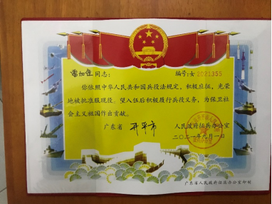 国无防不立,民无兵不安,大学生征兵工作是治国安邦的大事,是加强国防和军队建设的迫切需要。2021年9月1日,PA视讯,PA视讯191班雷加佳同学响应国家号召,携笔从戎,积极应征,光荣入伍。