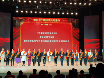PA视讯,PA视讯获得“湖南省巾帼建功先进集体”荣誉称号,院长李忠玉上台领奖。