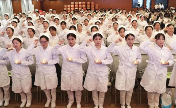 毕业生齐声宣誓:“燃烧自己,照亮他人,把毕生精力奉献给护理事业!”