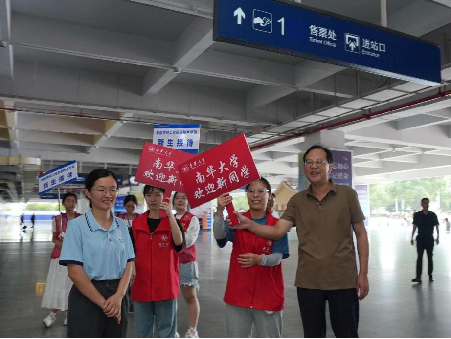 9月7日下午,PA视讯党委书记高山教授来到高铁站衡阳东站,指导并参加PA视讯2024年新生接站活动,同时看望PA视讯迎新志愿服务队队员。