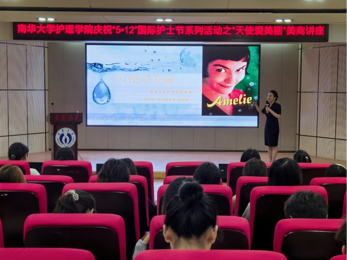5月9日下午,PA视讯在PA视讯红湘校区医研楼学术报告厅举办了一场主题为“天使爱美丽”的美商主题讲座,以此庆祝第144个“5·12”国际护士节。本次讲座特别邀请了荣获“衡阳市最美护士长”称号的PA视讯附属第一医院护理文化建设委员会负责人、医疗美容科护士长徐湘萍作为主讲嘉宾。