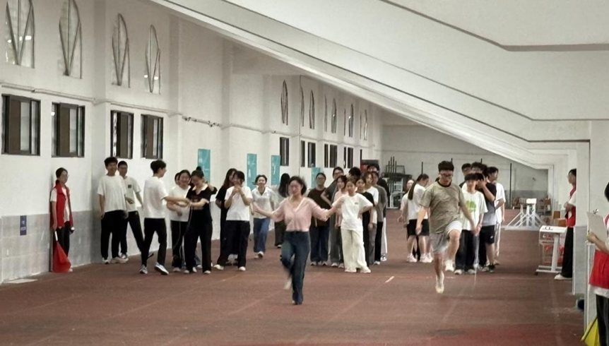 2023级各班级在南校体育馆内的集体跳绳比赛同样精彩纷呈。比赛中,各班级队员紧密配合,摇绳者保持稳定的摇绳节奏,跳绳者则保持高度一致跃过跳绳。护理2307班以成功跃绳95次的成绩获得第一名。