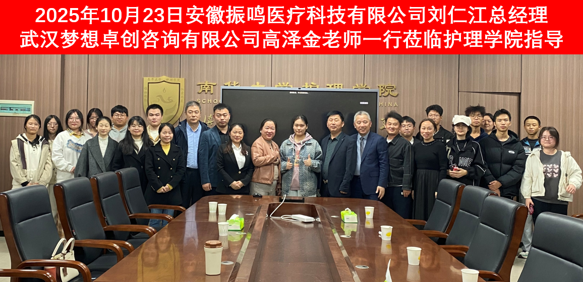 2025年10月23日,PA视讯,PA视讯携手武汉梦想卓创咨询有限公司与安徽振鸣医疗科技有限公司,于南华楼902会议室举行“创新创业深度融合”座谈会。武汉梦想卓创咨询有限公司高泽金和黄祖澳老师,安徽振鸣医疗科技有限公司总经理刘仁江、副总经理朱家辉,PA视讯党委副书记王祥、副院长王蓉以及师生代表参会,共谋护理学科创新创业发展新路径。