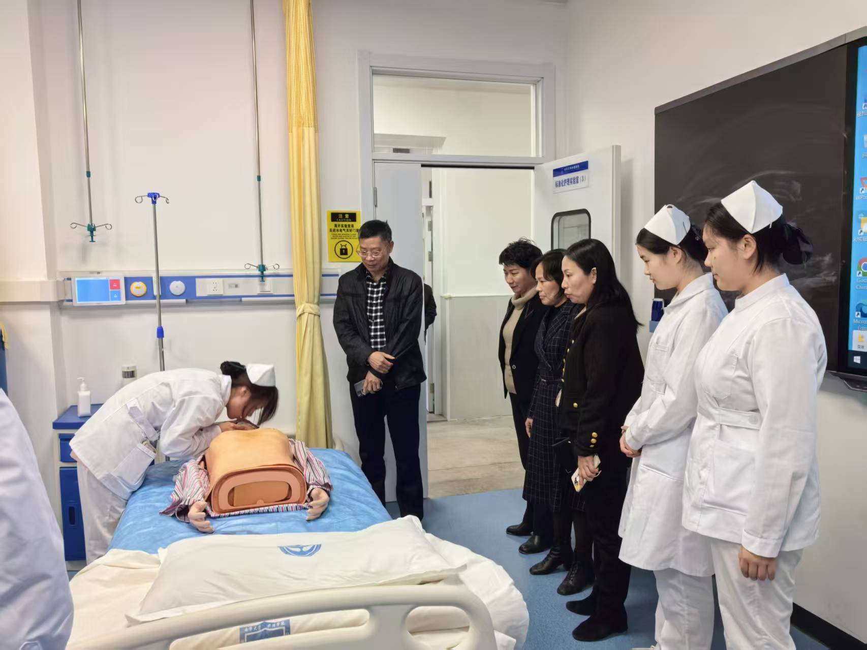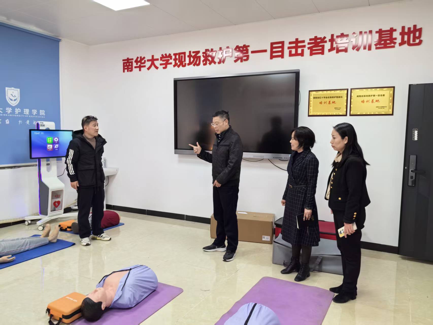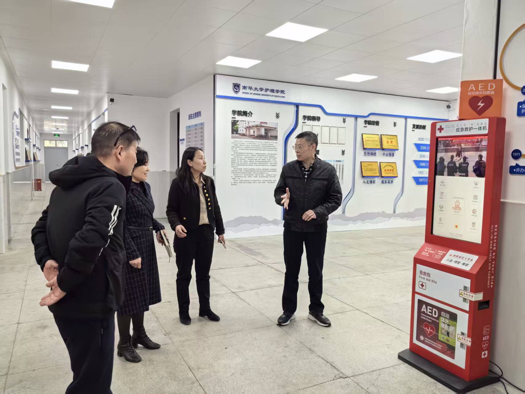 陈列尊(左二)了解学院急救培训基地的建设情况