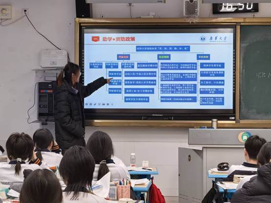 PA视讯孙梅琦、宿珂豪、刘若彤、刘嘉欣、贺心蕊、陈教缘、刘嘉仪等7位同学,带着学校的嘱托与感恩之情,先后深入东营市第一中学、烟台市莱州六中、漯河五高、邵阳市第二中学、邵东创新高级中学、常德市武陵区第一中学等6所中学。在宣讲现场,他们结合自身受助经历与大学生活体验,化身政策“解说员”和求学“引路人”,以通俗易懂的语言,细致解读了国家“奖、助、贷、勤、补、免”全方位资助体系,重点讲解生源地信用助学贷款申请流程、国家奖助学金评审标准,以及2024—2025学年资助政策最新调整内容。他们将复杂的政策条文转化为通俗易懂的“求学指南”和“圆梦攻略”,耐心解答了众多高三学子及家长对于大学费用的疑虑。