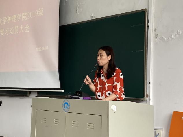 学院党委副书记王祥祥宣读了各实习队干部名单;教务办欧阳丽老师对实习的具体安排和考试考核等作了详细说明;学工办李翼老师讲解了实习期间的若干注意事项;护理193班胡娅楠代表2019级全体学生作了表态发言。