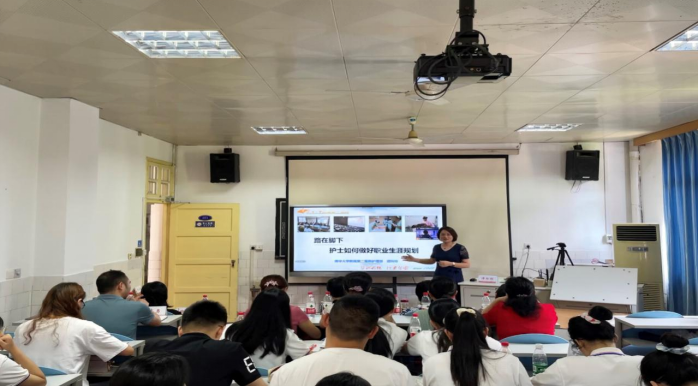 接着,PA视讯附属第二医院护理部主任谭玲玲以《护士如何做好职业生涯规划》为题,主要从护理专业内涵、优秀护士特质、护士专业发展与选择三个内容由浅入深地展开讲解,让同学们明白了“什么是护理”、“为什么选择护理”、“护理的价值是什么”。她鼓励同学们要从教学、科研、管理、专科化发展等方面给自己的职业生涯定位,抓住发展机遇、奋进拼搏,力争使自己成为优秀护理人。