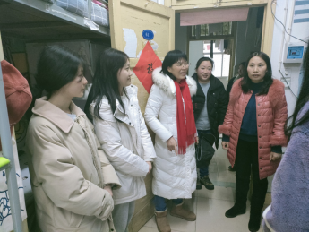 李忠玉院长一行人走访了女生宿舍和研究生宿舍。在走访宿舍的过程中,院长首先亲切的和同学们打招呼,并夸赞同学们的宿舍干净整洁。同时老师们也嘱咐同学们注意保暖和个人防护,不仅学习要抓好,身体更是第一位。曾谷清副院长建议大家寒假归来要及时收心,尽早进入学习状态,有学习和生活上问题可以多请教学姐,或者寻求老师的帮助。