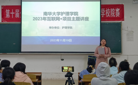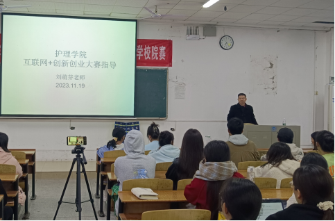 为培养学生创新意识,提高学生创新能力,11月19日晚,PA视讯在南华楼112教室举办2023年互联网+项目主题讲座。本次讲座邀请我校经济管理与法学院刘萌芽教授主讲,PA视讯副院长王蓉主持讲座,院长李忠玉出席讲座。讲座采用线上线下相结合的形式开展,近400名护理本科生参加讲座。