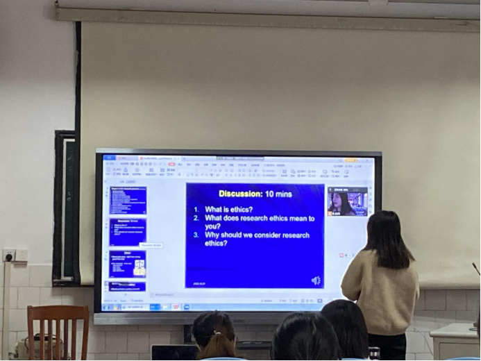 该课程共1.5个学分、24学时,采用全英文远程网上授课,课程内容涵盖抽样、信效度、质性研究、混合性研究、论文写作、论文投稿、文献回顾及评价、研究伦理等,丰富详实,吸引了我校及兄弟院校广大护理学及医学相关专业师生积极参与。课堂上全程英语互动,同学们听课认真、思维活跃,且能积极、主动跟海外专家线上课堂交流,整个课堂氛围活跃。