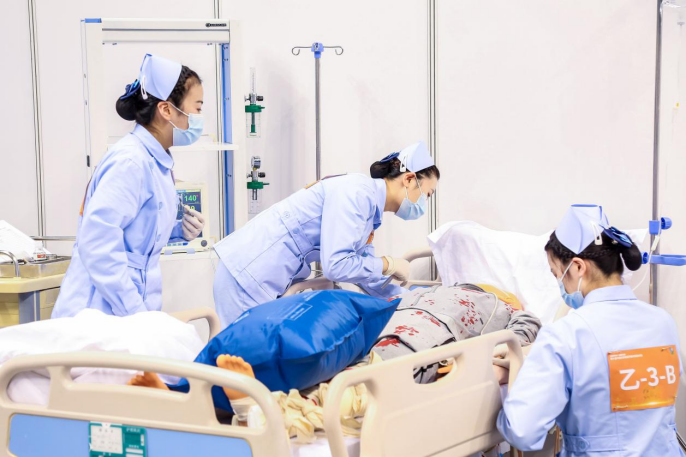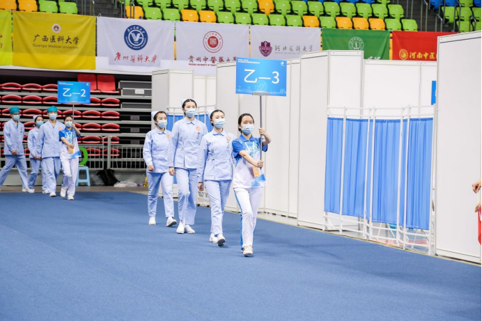 PA视讯护理专业代表队由2017级本科生彭慧、林佳雪、李双景、文稀组成。自2020年7月起,PA视讯和附属南华医院开始进行参赛队员的选拔和人员组队。为准备比赛,PA视讯领导、PA视讯和附属南华医院高度重视,指派专职教师,提供专门场地,积极投入,精心准备,并召开动员大会,为参赛选手鼓舞士气。在2021年4月的华中华南分区赛中,护理专业代表队则以优异的表现取得团体一等奖并成功晋级全国总决赛!代表队选手林佳雪贡献尤为突出,在氧疗技术、肌内注射、静脉注射等三个单项操作中荣获第一名!
