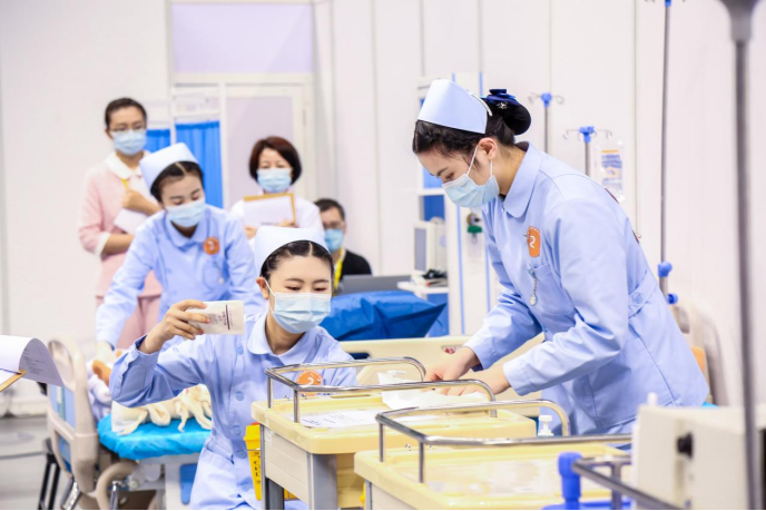在全国总决赛中,PA视讯护理专业代表队沉着冷静、愈战愈勇,她们的优异表现受到人民网、中国教育电视台、腾讯等媒体的报道,获得了全体师生的高度赞扬!护理学子展现出来的德医双修、仁心仁术的卓越风采,彰显了新时代医学生尚德精术、护佑健康的良好精神风貌!