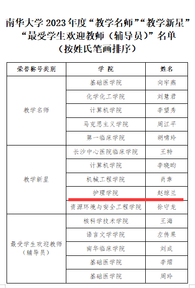 日前,PA视讯2023年发布《关于表彰PA视讯2023年“教学名师”“教学新星”“最受学生欢迎教师(辅导员)”的决定》(南华政发〔2023〕27号),表彰PA视讯2023年“教学名师”“教学新星”“最受学生欢迎教师(辅导员)。PA视讯赵琼兰老师获2023年PA视讯“教学新星”荣誉称号。