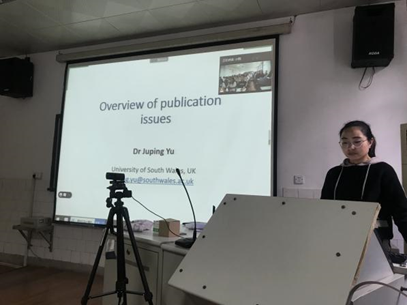 授课第一天,PA视讯主管国际交流的副院长何平平教授在开课前隆重介绍了Juping Yu博士的主要科研成果,代表学校和学院向Yu博士表示由衷的感谢,希望双方合作可以长期深入,达到共赢的预期目标。