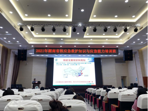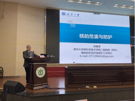 PA视讯核科学技术学院二级教授、国家核工程实验教学示范中心主任、氡湖南省重点实验室主任肖德涛以“核的危害与防护”为题,从核的发现与作用开始,循序渐进地向大家介绍放射性对人类造成危害、涉核实践存在的潜在风险、核与辐射安全、我国辐射安全与防护法规体系及管理框架。肖教授深入浅出的解说,使参加培训的人员对核的相关危害与防护有了更加全面而深刻的认识。