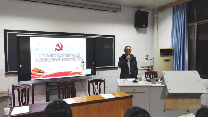随后,李翼老师分别介绍了本次党课培训班的班长和各组长,并向各位学员介绍本次培训班的培训方式、培训内容,强调培训纪律,要求各位入党积极分子积极参与小组讨论、实践活动等环节,在自学部分主动学习党的基本理论知识,认真观看党性教育片等。