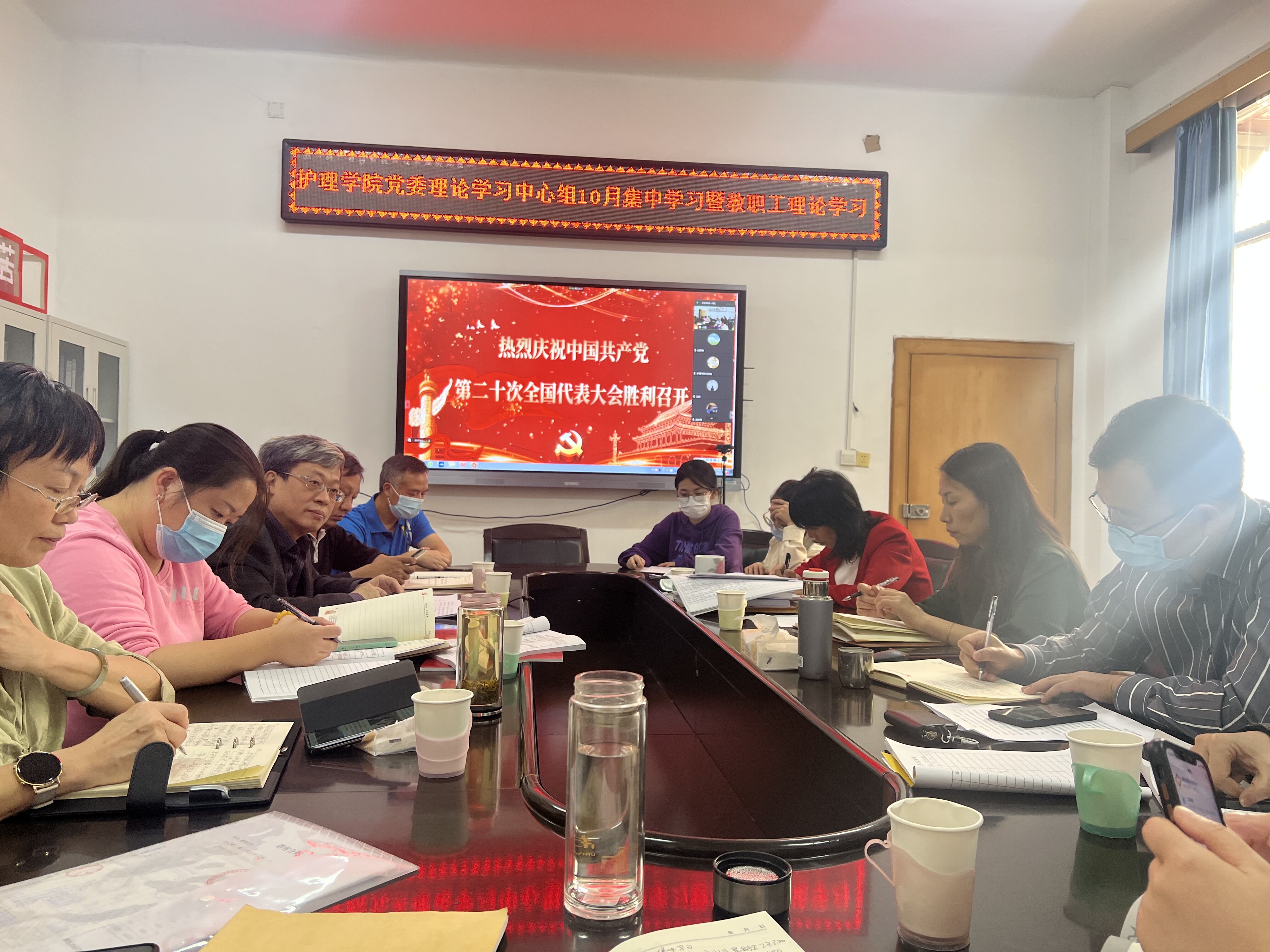 2022年10月21日下午,PA视讯党委理论学习中心组10月集中学习暨教职工理论学习在学院会议室举行。学习主题是“深入学习领会党的二十大报告精神,全面贯彻党的教育方针,落实立德树人根本任务,汲取护理专业开办37年和学校成立64年以来的宝贵经验和精神财富,奋力推进学院一流建设,奋力推进新时代高水平大学建设。”集中学习在线上线下同时进行。全体院领导、党委委员、支部书记、科室负责人、院团委书记、学术委员会成员代表、教师党员代表、学生党员代表和团学干部代表参加线下学习。其他教职工和学生党员参加线上学习。党委书记袁春阳主持学习。