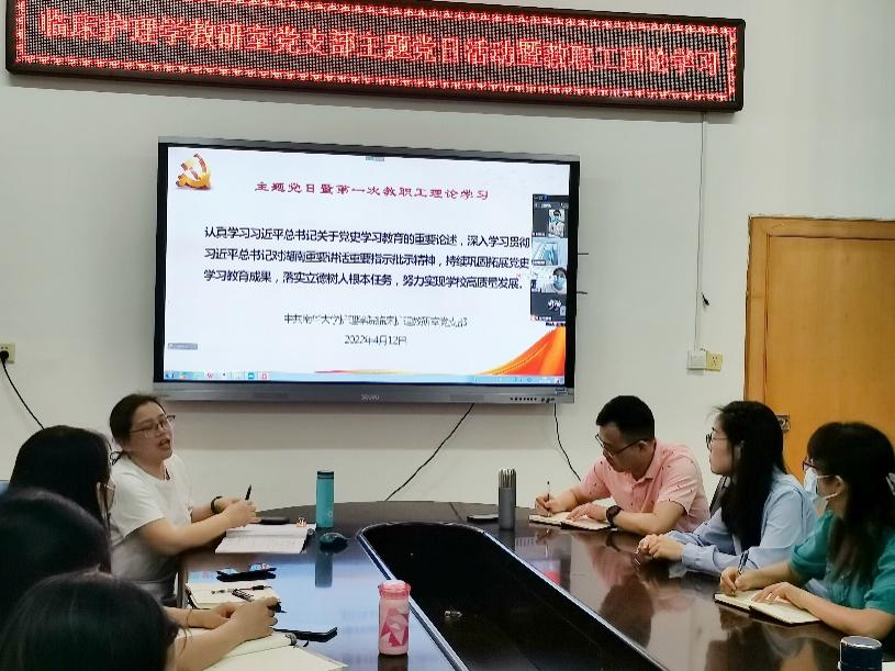 2022年4月12日上午,PA视讯,PA视讯临床护理教研室党支部在PA视讯207教室开展主题党日活动暨2022年第一次教职工理论学习。会议采用线上+线下相结合的模式。党支部书记李健芝主持会议,院党委委员吴飞、院分工会主席、副处级辅导员彭建南出席会议,教研室全体教职工及研究生党员及入党积极分子参加了学习。