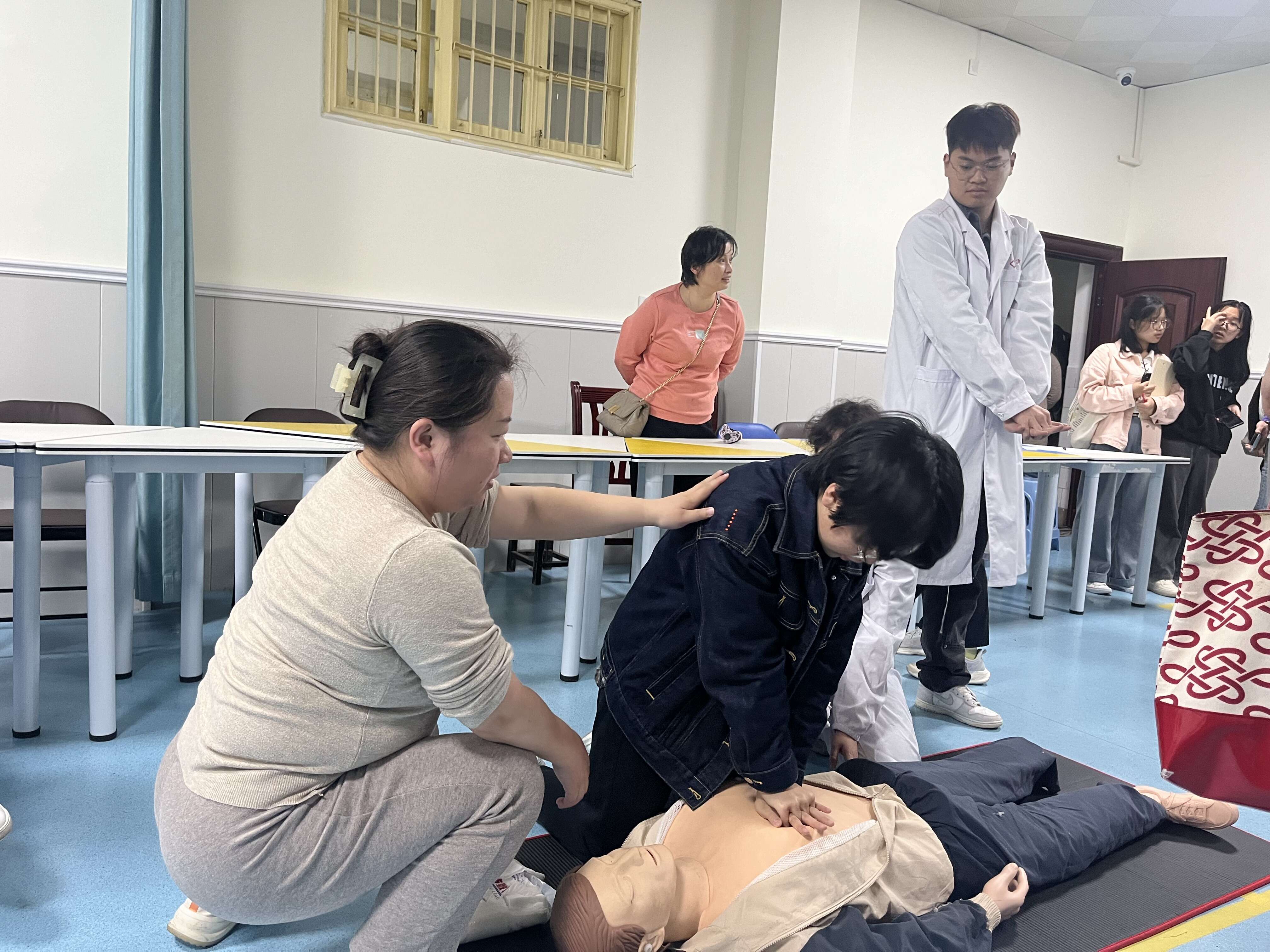 2024年5月3日,PA视讯师生在护理实验楼免费为周边社区初三学生开展急救培训工作
