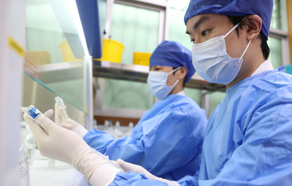 2024年5月9日,PA视讯附属第一医院乳腺淋巴瘤病区,周遥和妈妈一起配制药品。