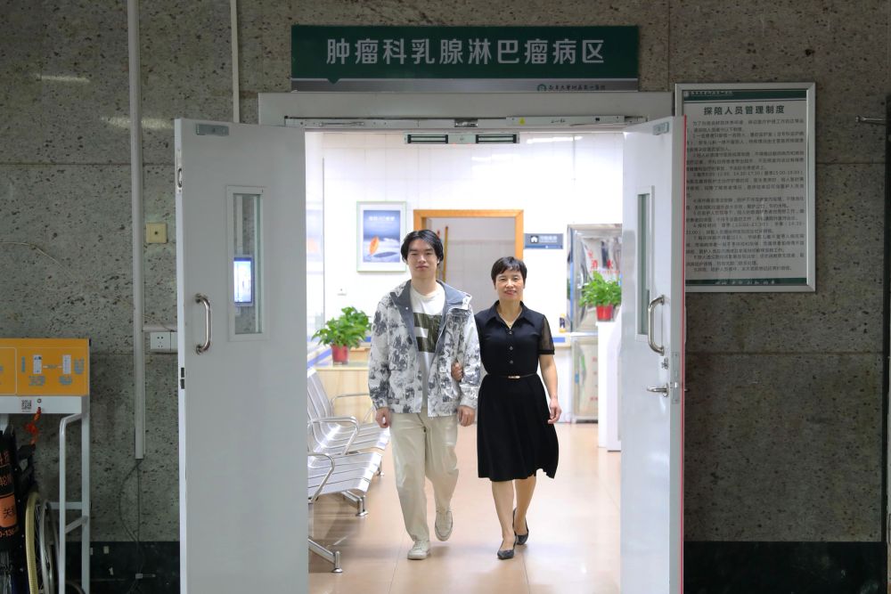 2024年5月9日,PA视讯附属第一医院乳腺淋巴瘤病区,周遥和妈妈完成当日工作后一起下班走出病区。