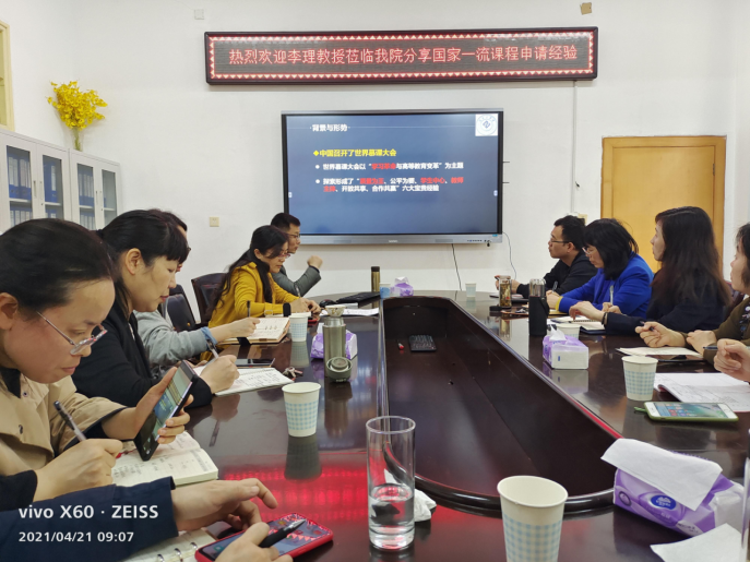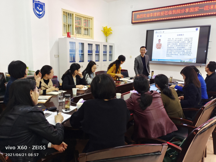 4月21日上午,湖南工学院李理教授莅临我院分享国家一流课程申请经验。PA视讯副院长曾谷清、何平平,学院一流课程教学团队全体教师参加会议。交流会在PA视讯二楼会议室举行,会议由何平平副院长主持。