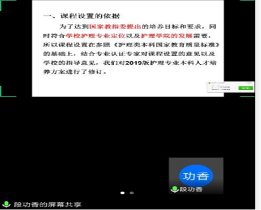 接下来,会场交给PA视讯,PA视讯副院长何平平主持。何平平教授从我校PA视讯的发展历程、专业认证的准备、专业认证的心得体会、注意事项等讲解了护理学专业认证的情况。段功香教授从培养目标、各门课程的学分学时分配、改革举措、微专业设置等方面详细介绍了2019版护理学专业本科人才培养方案。苏银花博士以青山街道社区卫生服务中心为例,从中心简介、实践教学、科研和社会服务、特色项目阐述了我院实践教学中社区护理与社会服务的发展状况。
