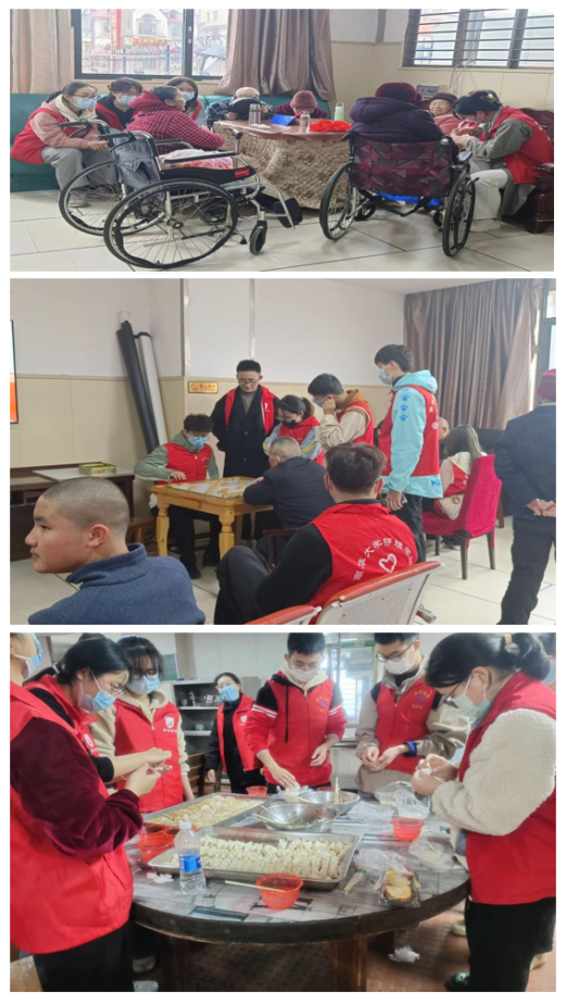 在本次志愿活动中,PA视讯同学们积极主动地和老人们谈心,了解他们的故事与感受。部分志愿者自发组织为老人剪指甲、陪他们下棋,认真陪伴他们,让老人们感受到爱与关心;与此同时,另外一部分志愿者在厨房里为老人们制作美味的饺子,整个厨房里充满了爱的味道。