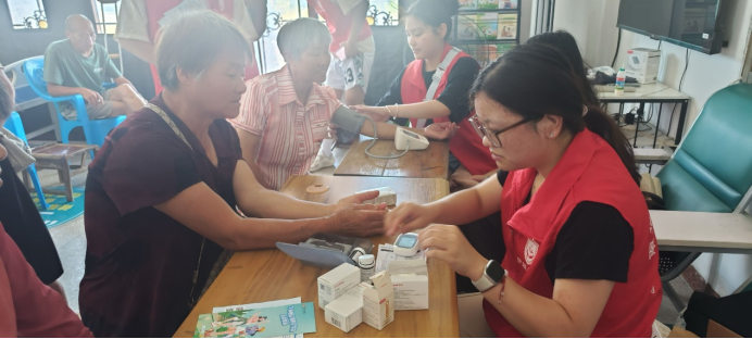 志愿服务活动在山林村卫生室开展。在义诊现场,PA视讯的志愿者们耐心地为村民测量血压、血糖,并细致解答健康疑问,提供科学的健康生活建议。村民有序排队参加,互相搀扶帮助,并关心着彼此的健康状况,现场气氛热烈,志愿者们测量时的紧张情绪也在村民的鼓励和包容下更加从容与自信。活动结束后,村民们纷纷对志愿者们的热情服务表示感谢。