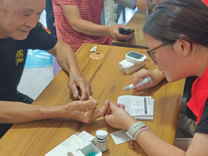 为推进健康乡村建设,提升基层医疗健康服务水平,有力有效推进乡村全面振兴,7月3日,PA视讯,PA视讯老年护理协会走进衡阳市雁峰区岳屏镇山林村,开展为期两天的免费测血压、测血糖活动,宣传卫生健康政策和进行健康知识科普,为山林村村民送去健康关怀。